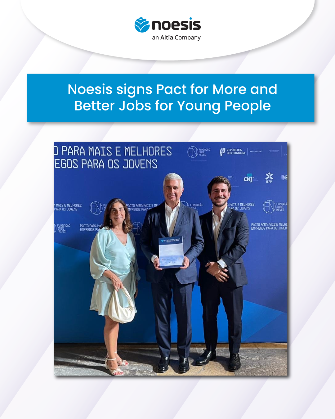For Alexandre Rosa (CEO), "Noesis always seeks to create sustainable employment opportunities and is pleased to be part of a group of more than one hundred companies that are committed to investing in initiatives to hire and retain young workers".